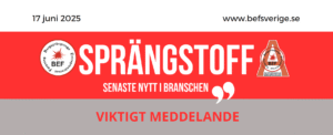 Från och med 15 juli 2025 ska tillstånd för användning, överföring och förvaring i flyttbart förråd sökas i företagets säteskommun – en tydlig förändring jämfört med tidigare praxis. Det är ännu oklart hur företag med befintliga tillstånd i andra kommuner ska hanteras; BEF för dialog med MSB och uppmanar alla att dubbelkolla sina tillstånd.